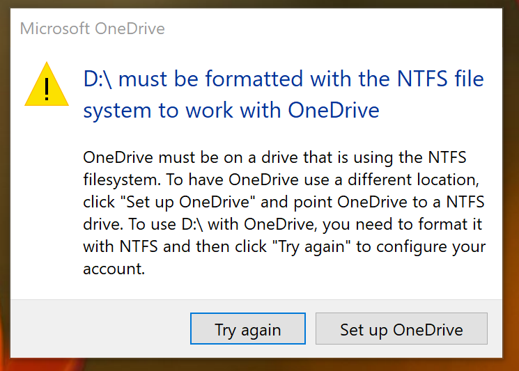 D’autre part, Microsoft affirme que OneDrive a toujours utilisé NTFS, expliquant plutôt que le seul inconvénient était un avertissement pour les utilisateurs qui ont configuré un système de fichiers différent.