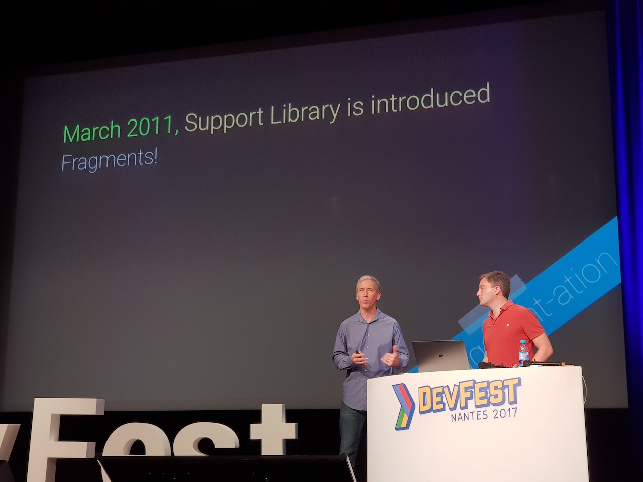 Et, quoi de plus parlant et bluffant (même nostalgique parfois) que de faire une chronologie complète d’une plateforme utilisée par plus d’un milliard de personnes ? C’était l’objectif que les speakers se sont donné pendant une heure lors de ce DevFest Nantes. Nous verrons qu’Android est passé d’un démarrage effréné à une position de domination sur le paysage du mobile, tout en poussant ses paradigmes vers de nouveaux domaines de produits tels que les wearables et l’automobile.