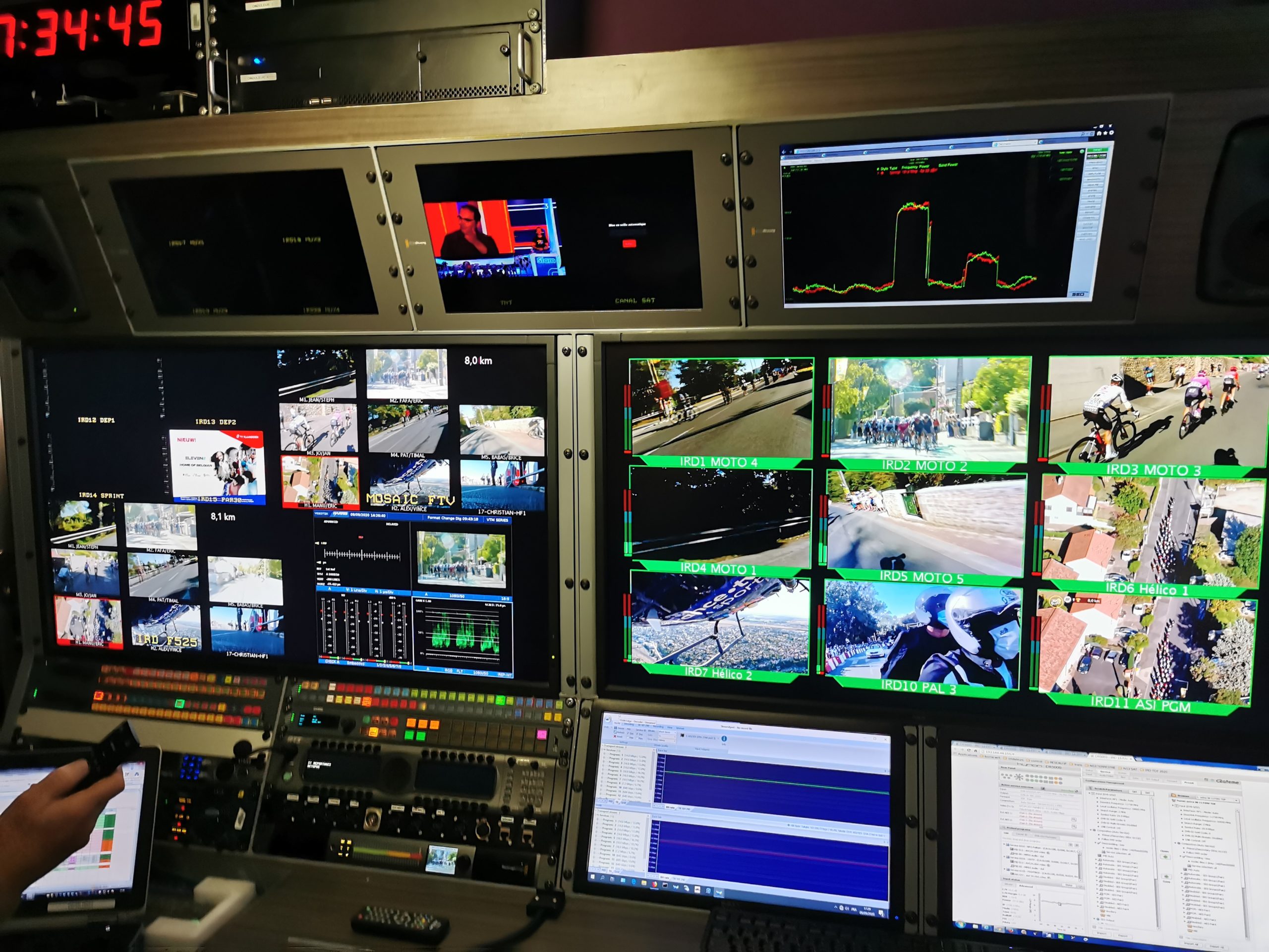 Et avec une crise sanitaire sans précédent, les plans de la direction du Tour de France ont dû évoluer : réaliser des interviews en live des coureurs à distance — vidéoconférence haute définition (UHD 4K), des studios de télévision à distance, etc.