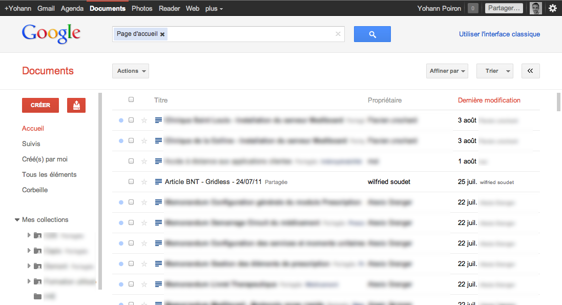 C’est au tour de Google Docs d’adopter la nouvelle interface inspirée par Google+. Vous pouvez l’essayer en cliquant ici. En effet, le paramètre ui=3 dans l’URL indique que vous souhaitez afficher la nouvelle version de l’éditeur en ligne. Ne vous inquiétez pas, pour les “moins geeks”, il vous suffit de cliquer sur le lien à droite de la page intitulé : “Découvrez la nouvelle interface”.