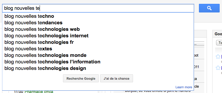 Côté suppression, vous ne trouverez plus le bouton concernant la recherche avancée, pas complètement idiot puisque vous n’avez pas encore fait de recherche. La page d’outils des langues a été enlevée, tandis que le bouton “J’ai de la chance” est seulement affiché au-dessous de la liste de suggestions quand vous commencez à taper une recherche.