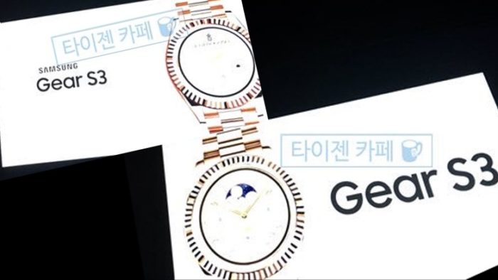 Les images ci-dessous ont été affichées sur le compte Twitter de Tizen Cafe, et repérées par SamMobile. Qu’elles soient authentiques ou non, il n’y a pas grand-chose à voir de toute façon — les images montrent une smartwatch ronde avec un bracelet métallique, et des bords cannelés, ressemblant à une Rolex. Et, on peut lire « Gear S3 ».