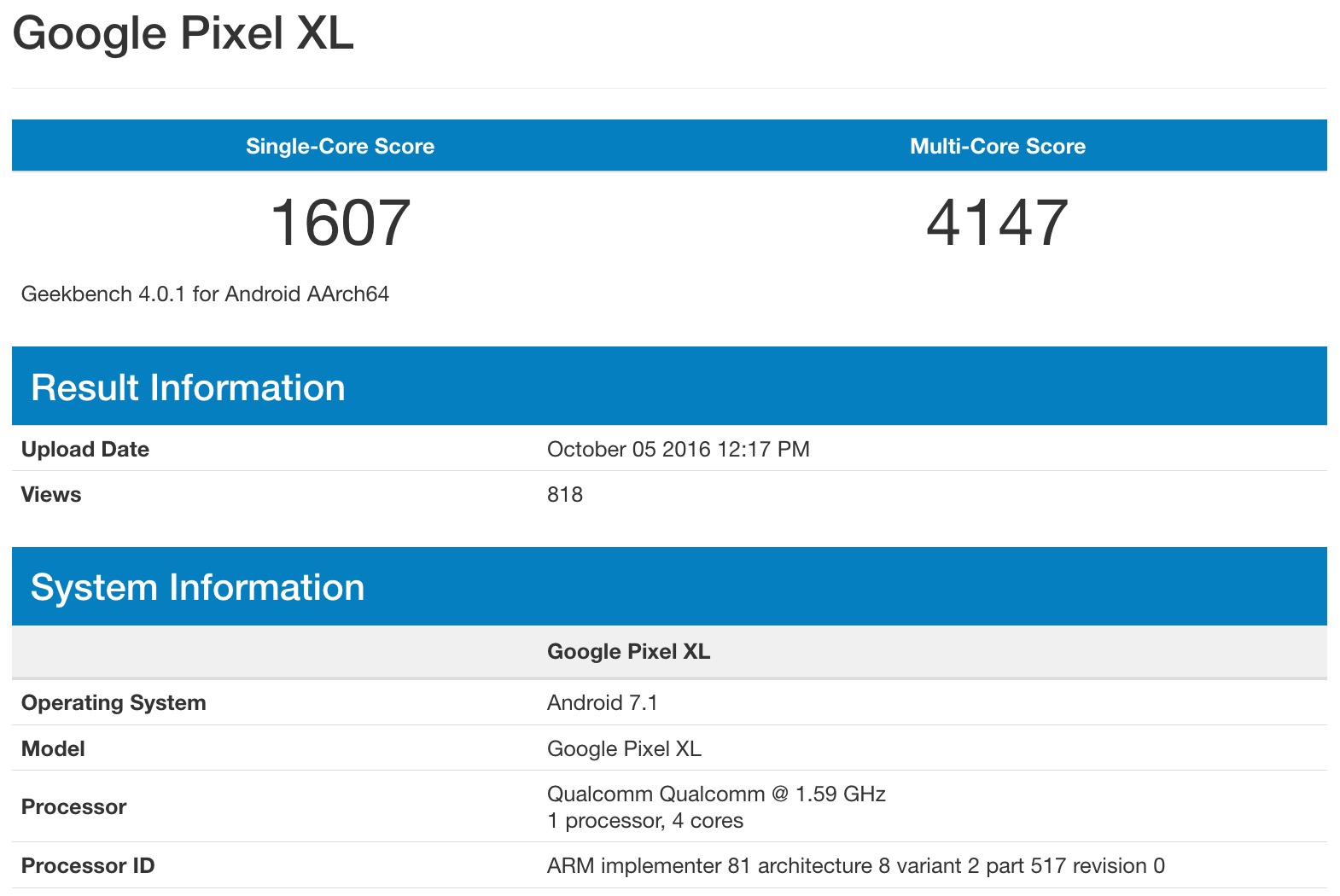 Tags : GeekbenchGooglePixel XL