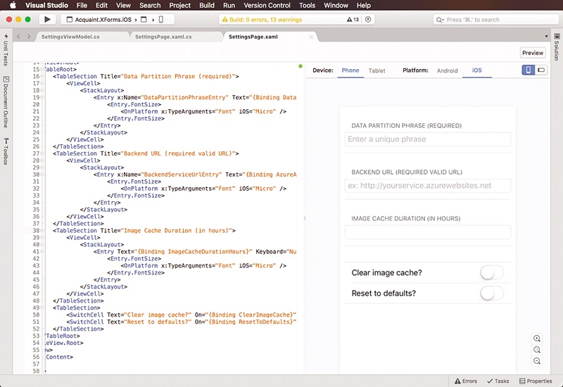 Comme on peut l’attendre d’un IDE comme Visual Studio, il utilise la plate-forme du compilateur Roslyn, et la technologie de IntelliSene, ainsi que les mêmes moteurs débogueurs pour Xamarin et .NET Core. Pour l’instant, il ne supporte pas tous les types de projets Visual Studio, mais si vous avez des membres de l’équipe sur macOS et Windows, ou que vous-même vous basculez entre les deux systèmes d’exploitation, vous pouvez partager en toute transparence vos projets à travers les plates-formes. Visual Studio pour Mac prend en charge le développement natif iOS, Android et Mac grâce à Xamarin, et le développement serveur par .NET Core avec l’intégration d’Azure. Il prend en charge les langages C# et F# (langage fonctionnel).