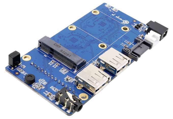 La carte d’extension Orange Pi NAS est un dispositif à 6,64 euros, qui étend les capacités du Orange Pi Zero. Il suffit de brancher le petit ordinateur dans la carte d’extension et vous bénéficiez d’un support pour les périphériques de stockage SATA et mSATA, deux ports USB 2.0 supplémentaires, une prise audio de 3,5 mm et une sortie vidéo composite. Ah, il y a aussi un microphone et un capteur IR.