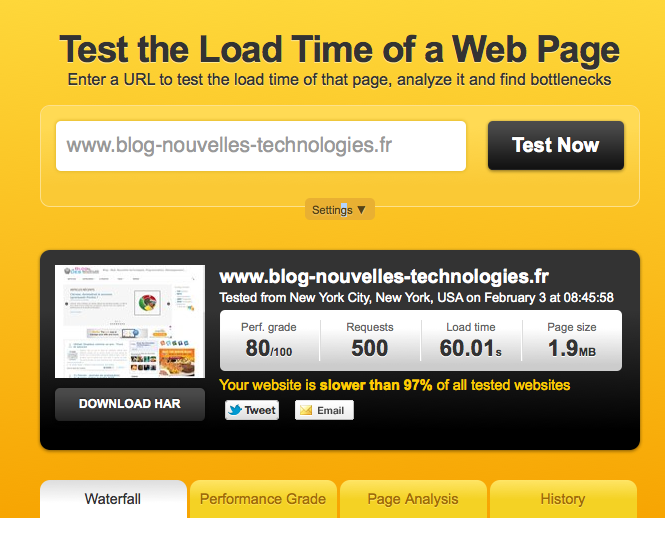 Pour tester l’un de ces éléments, il suffit de vous rendre sur le site de Pingdom Tools, saisir l’URL du site et cliquer sur le bouton “Run Now”.