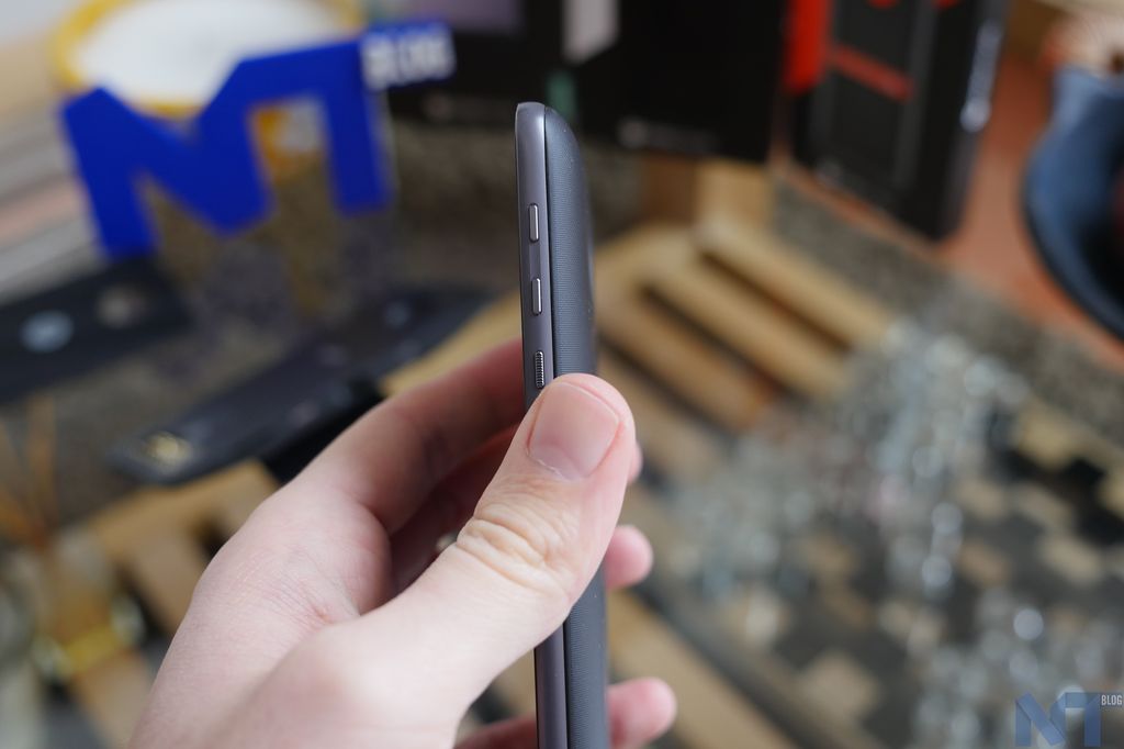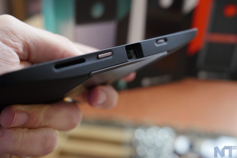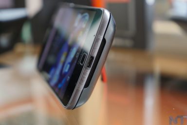 Ceci est un soulagement parce que les boutons de volume et d’alimentation du Moto Z sont de très petits boutons incrustés sur le côté droit du châssis en acier. Ces trois boutons latéraux sont aussi uniformément espacés et déroutants lorsque l’on souhaite appuyer dessus. Le fait que le bouton d’alimentation est légèrement riveté ne permet pas de le différencier si facilement. Sur le côté gauche du smartphone, vous retrouverez une tranche complètement lisse. Enfin, sur le dessus vous retrouverez le port SIM, qui se double d’un port micro SD ou d’une autre SIM.