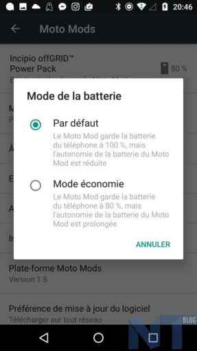 Si l’autonomie du smartphone ne vous suffit pas, il y a un Moto Mod qui offre une batterie externe d’une capacité de 2 200 mAh, en échange de quelques millimètres d’épaisseur supplémentaires. La batterie externe coûte la modique somme de 69,98 euros.
