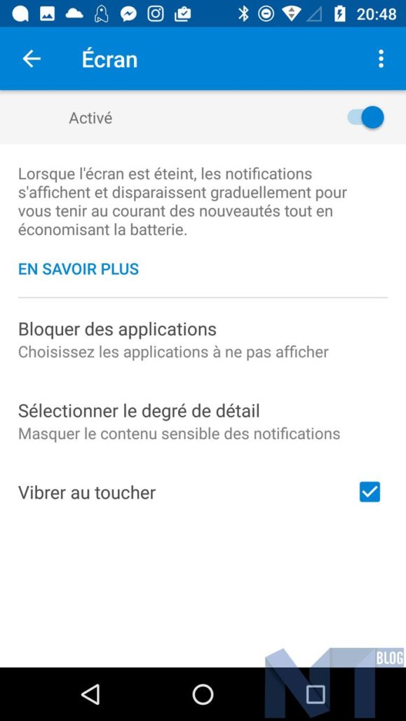 Il y a aussi Moto Display, une fonction semblable à ce que l’on retrouve dans de nombreux appareils haut de gamme. Ici, vous pouvez choisir ce que vous voulez afficher sur l’écran de verrouillage du Moto Z sans réveiller l’appareil, avec la possibilité de masquer des applications spécifiques, ou de cacher des informations sensibles.