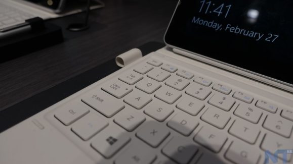 Les deux Galaxy Book ont des claviers optionnels, qui sont bien meilleurs pour la saisie que sur la TabPro S, grâce à une course plus importante lors de l’appui sur chaque touche. De plus, il a un bien meilleur design. Malheureusement, c’est une corvée pour le connecter et le déconnecter. Pendant quelques minutes j’ai tâtonné à essayer de faire tenir le clavier pour que celui-ci soit magnétiquement verrouillé sur l’arrière de la Galaxy Book. Franchement, ce n’est pas l’idéal.