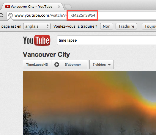 Remplacez le mot votreYTid dans le code ci-dessus, avec l’identifiant de la vidéo Youtube souhaitée. Vous pourrez obtenir ce dernier à partir de son URL, comme le montre l’image ci-dessous :
