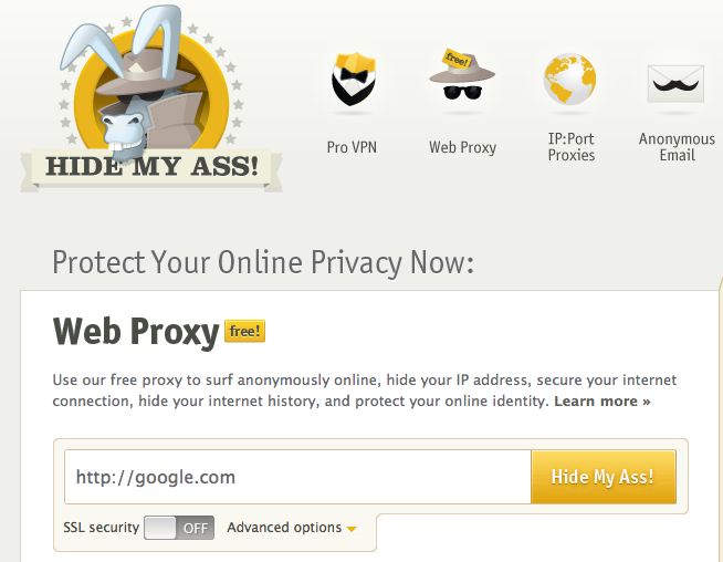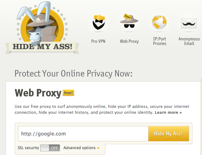 Commençons par HideMyAss. Ce site peut fournir la meilleure façon de cacher votre identité. Ainsi, avec HideMyAss vous pouvez masquer votre adresse IP et votre historique. Il va également vous aider à protéger votre identité en ligne. Il suffit de coller l’URL du site Web et que la fête commence !