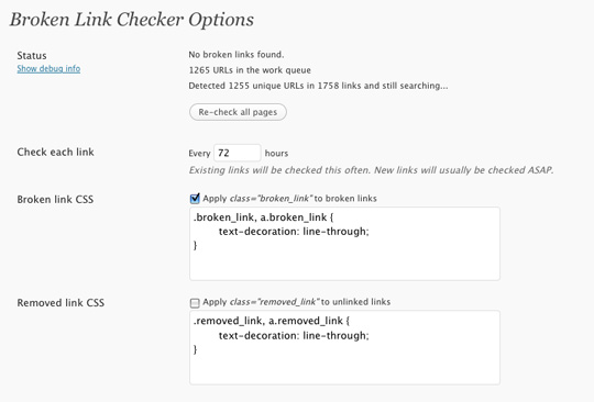 L’extension Broken Link Checker surveille votre blog et recherche les éventuels liens brisés. Vous serez averti en cas d’erreurs. Outre le suivi, il vérifie vos articles, vos commentaires et autres contenus tels que des images manquantes. Tous les liens brisés seront affichés dans des onglets spécifiques.