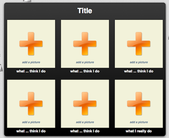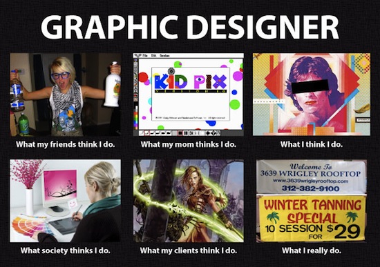 “What People Think I Do / What I Really Do” est une série de “tableaux” visuels représentant une gamme d’idées préconçues associées à un domaine particulier. Cette série compare donc différentes impressions sur une seule profession, caricaturant ainsi cette dernière.