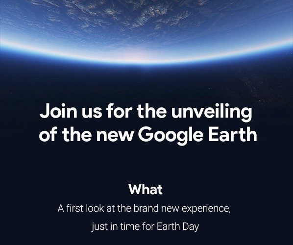 Une nouvelle version de Google Earth va être dévoilée cette semaine, précise Google, en s’abstenant de partager plus de détails concernant son futur événement. À juste titre, selon l’invitation que Google a envoyée, et relayée par AndroidCentral, l’événement aura lieu le 18 avril, quatre jours avant la Journée de la Terre, qui aura lieu à l’international ce samedi 22 avril.