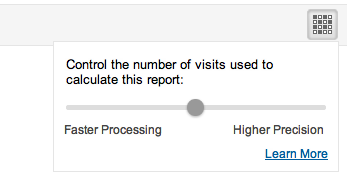- Ajout du mode “fast-access” : Une façon d’accélérer l’exécution des données consiste à réaliser ce que l’équipe appelle « accès en mode rapide », aux rapports générés à partir d’ensemble de données volumineuses. Pour être plus précis, si un rapport exige un calcul sur des millions de visites, alors Google Analytics a pris le choix de sélectionner un échantillon aléatoire sur ces visites et estime les résultats du rapport sur la base de ces données. De plus, vous aurez maintenant la possibilité de contrôler le nombre de visites utilisées pour le calcul. Ainsi, les rapports sont plus rapides à charger, et les tests effectués indiquent que les données retournées sont très précises