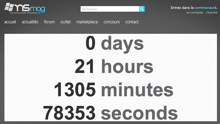 À l’heure où j’écris ces lignes le compte à rebours indique qu’il ne reste plus que 21h et 1305 minutes avant la sortie de cette version bêta public. Ainsi, Windows 8 sera disponible en téléchargement public demain à partir de 15h, heure de Paris, où plutôt heure de Barcelone.