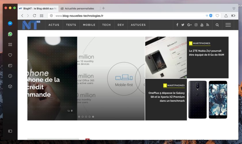 La première chose que vous remarquerez après le lancement du navigateur mis à jour est la nouvelle barre latérale qui intègre un accès rapide aux services de chat comme Facebook Messenger, WhatsApp ou encore Telegram. Pour vous connecter à ces services, il suffit de cliquer sur leurs icônes dans la barre latérale, puis de fournir vos informations d’identification (pour WhatsApp, par exemple, il vous suffit de scanner le QR code, comme vous le faites sur la version Web de WhatsApp).