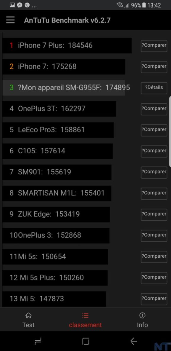 Comme on peut s’en douter, les Galaxy S8 et S8+ sont très rapides. Le smartphone ne semble pas souffrir de problèmes liés à la température ou à la stabilité. Cependant, certains jeux plus gourmands risquent de ne pas fonctionner complètement, même avec la résolution FHD+ par défaut (2 220 x 1 080 pixels). Pour être plus précis, les jeux 3D seront très agréables, mais le nombre d’images par seconde n’arrivent pas à atteindre un taux de 60 fps dans un certain cas pour les jeux les plus gourmands. C’est dommage. En passant le paramètre de l’écran à une résolution HD+ (1 480 x 720 px), cela ne semble pas améliorer les choses.