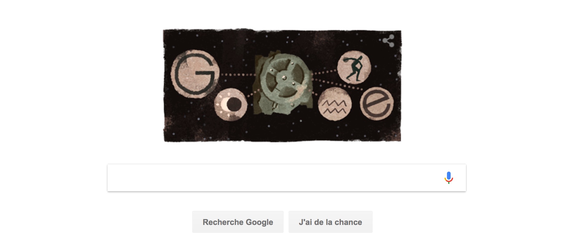 Pour souligner la découverte de Stais, il y a 115 ans, Google a donc consacré son doodle au mécanisme Antikythera, un mécanisme d’horlogerie complexe qui aurait été conçu et construit par des scientifiques grecs environ 87 ans av. J.-C. ou même plus tôt.