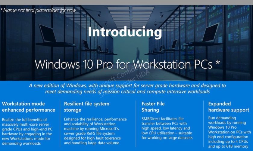 Nommée Windows 10 Pro for Workstation dans ces captures d’écran, et Microsoft affirmant elle-même que ce nom n’est pas définitif, cette nouvelle version de Windows 10 est compatible avec le matériel de qualité serveur. Et, elle est conçue pour répondre aux besoins exigeants de charges de travail critiques et intensives en informatique. En effet, cette version va offrir des optimisations pour les puissants serveurs multicœurs, qui se démarquent par une grande capacité de mémoire vive, et des disques durs qui offrent des pétaoctets.