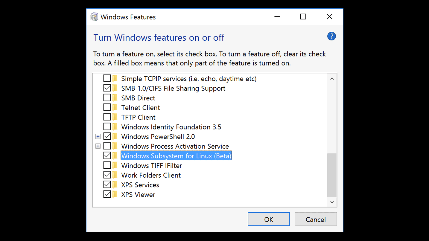 Mais à partir de la nouvelle version preview de Windows 10 lancée la semaine dernière, vous n’avez pas besoin d’activer le mode Développeur pour utiliser WSL. Pour être claire, la fonctionnalité est toujours destinée aux développeurs. Microsoft ne supporte officiellement que l’exécution de Linux dans un environnement de ligne de commande, bien que certains utilisateurs aient compris comment activer l’exécution des applications qui ont une interface utilisateur graphique.