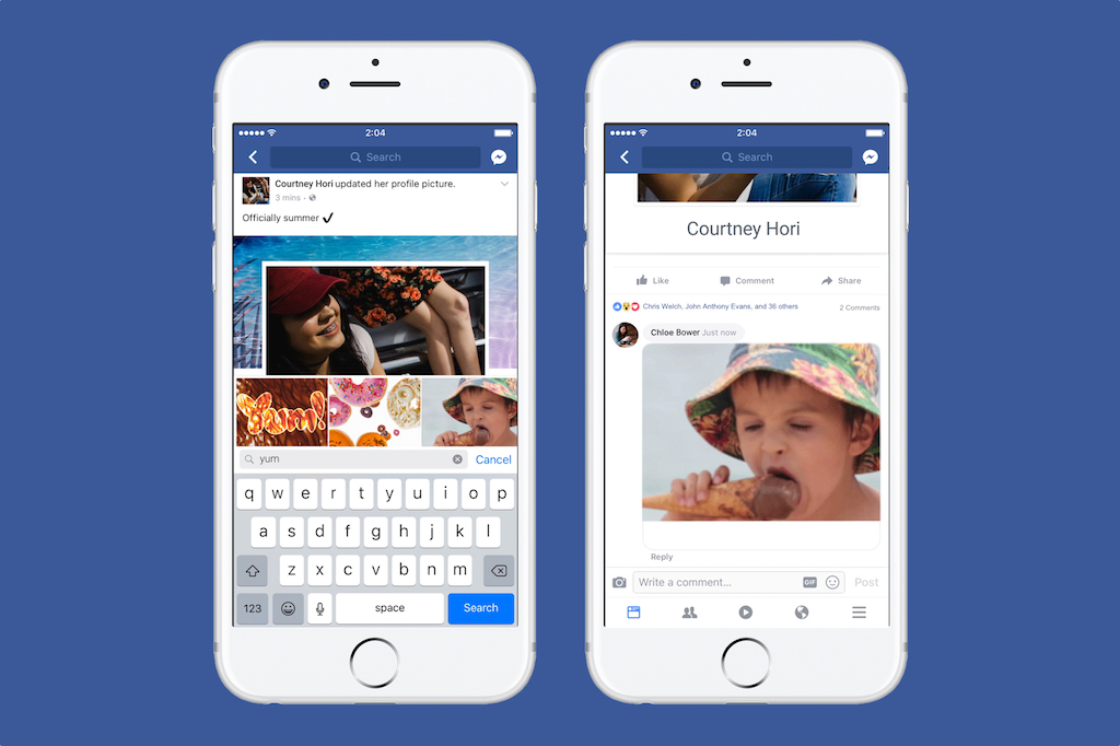Pour la 30e année du GIF, Facebook dévoile la possibilité d’envoyer un GIF dans les commentaires sans quitter la plateforme. La fonctionnalité, qui a été disponible pour une sélection d’utilisateurs, est ouverte à tous, et nécessite juste d’appuyer sur le bouton GIF dans un commentaire, puis en saisissant quelques mots pour trouver le GIF appropriés — analogue à la façon dont un GIF est envoyé dans Messenger. Auparavant, les GIF ne pouvaient être téléchargés que pour les commentaires en ajoutant un lien Giphy ou depuis la bibliothèque interne.