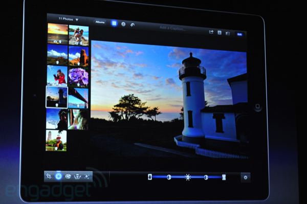 iPhoto débarque enfin sur l’iPad. Selon la Keynote, ce dernier a été revu en profondeur afin d’être pleinement compatible avec le tactile.