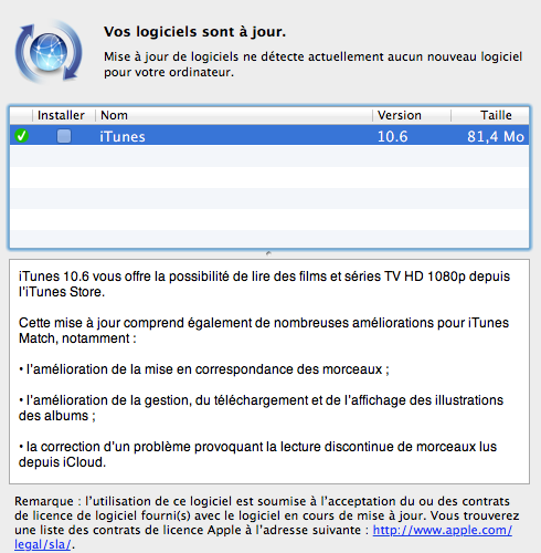 Après la Keynote d’Apple d’aujourd’hui, Apple propose son lot de mise à jour pour ses applications ! On commence par iTunes 10.6 qui vient d’être publié. Cette mise à jour vient en réponse aux différentes annonces faites plutôt dans la soirée, telles que la prise en charge du 1080p pour l’Apple TV et d’autres améliorations.