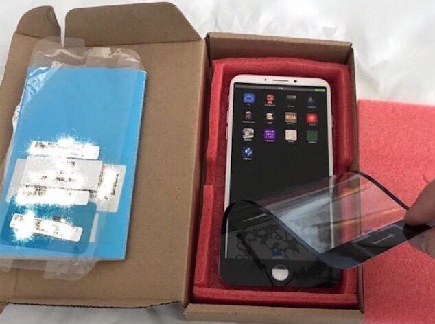 Tout d’abord, voici la chose étrange avec cette fuite. Le film protecteur à l’écran dispose d’un bouton d’accueil, alors que l’appareil lui-même n’en dispose pas, et que les bords d’écran sont plus épais que ceux que nous avons observés dans les précédentes fuites. Cela soulève évidemment des questions quant à sa légitimité. Et, il y a aussi d’autres éléments qui indiquent que c’est tout simplement une fausse photo.