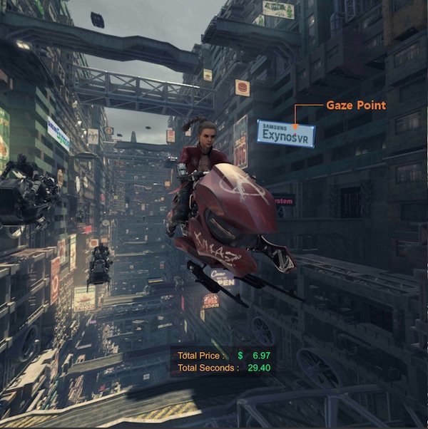Le casque, intitulé « Exynos VR III » (une référence à la gamme de processeurs Exynos de Samsung), et visible dans le cliché ci-dessus, est supposé être en mesure de ne pas simplement suivre les mouvements des yeux et des mains, mais également de disposer de la reconnaissance vocale et faciale (expression).