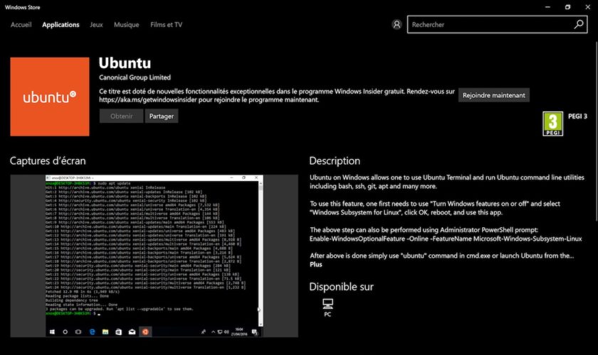Après openSUSE et SUSE Linux Enterprise Server (SLES), le système d’exploitation Ubuntu de Canonical est disponible en téléchargement à partir du Windows Store de Microsoft. pour tous les membres Insiders.