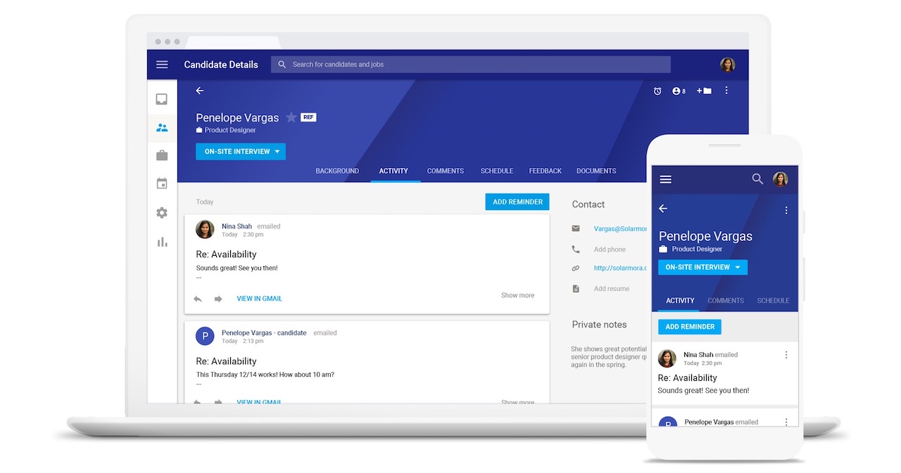 Destiné aux entreprises de petite et moyenne taille, Google Hire effectue également un suivi des candidats qui ont fait une bonne impression, mais qui malheureusement n’a pas obtenu le poste, faute d’un candidat plus brillant. Ainsi, cela permet aux employeurs de trouver des candidats plus facilement si un autre poste s’ouvre soudainement.