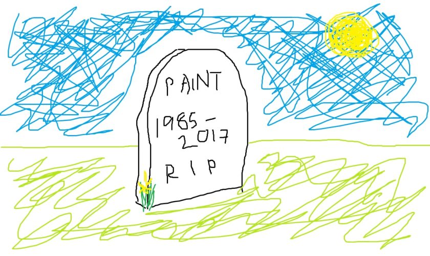 Comme Microsoft l’a déclaré sur son blog, Microsoft Paint a été ajoutée à la liste des “fonctionnalités supprimées ou obsolètes dans Windows 10 Fall Creators Update”. Elle est désormais répertoriée comme obsolète, ce qui signifie que son développement est stoppée, et que l’application pourrait être supprimée dans les versions ultérieures. C’est là que vous versez votre petite larme.