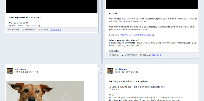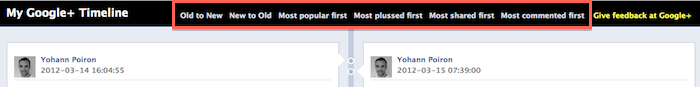 C’est d’ailleurs ce qu’un développeur, Jari Huomo, a également pensé et a décidé de créer un affichage chronologique pour les publications sur Google+. My Google+ Timeline a donc été développé sur cette idée !