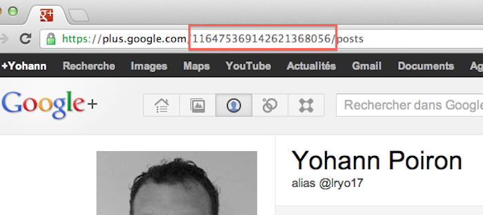 Pour utiliser ce service, tout ce que vous avez à faire est de récupérer votre ID Google+, qui se trouve dans l’URL de votre profil comme ici entouré en rouge :