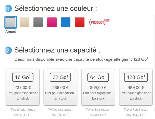 Jusqu’à aujourd’hui, le modèle de 32 Go était vendu au prix de 369 euros, et le modèle de 128 Go vendu 489 euros. Il y avait également des modèles de 16 Go (239 euros) et de 64 Go (369 euros), mais les délaisse aussi.