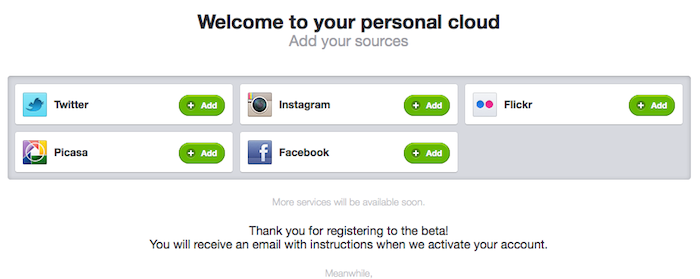 Pour commencer, le service est lancé avec l’intégration de Facebook, Twitter, Instagram, Flickr et Picasa. Tariq Krim, le fondateur et PDG de Jolicloud, estime qu’à terme, le service disposera de plus de sites et de services, y compris votre adresse mail, semblable à ce que propose Attachments.me, dans lequel les pièces jointes de vos mails sont automatiquement enregistrées dans un dossier sur le cloud.