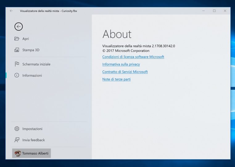 Publiées sur le blog Aggiornamenti Lumia, les images montrent comment l’actuelle application View 3D a été remaniée dans Mixed Reality Viewer. Elle permet aux utilisateurs d’ouvrir des modèles 3D à l’intérieur de Windows 10, et de les visualiser avec un casque de réalité mixte, ou à travers un écran 2D standard.