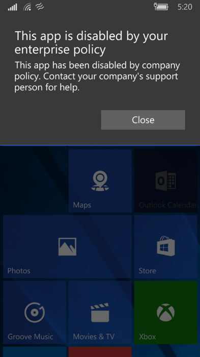 En outre, la sécurité de l’entreprise est renforcée avec davantage d’améliorations de AppLocker grâce aux commentaires des clients indiquant des invites d’avertissement pour les applications bloquées par les politiques in situ. « Nous avons amélioré l’UX et mis à jour les scripts MDM SyncML associés aux politiques. Les restrictions d’application peuvent être configurées soit par ApplicationManagement CSP, soit par AppLocker CSP », explique Microsoft.