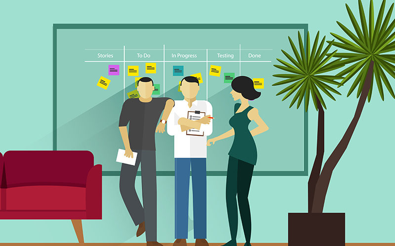 Probablement le plus populaire est le “Scrum“, une approche que la Scrum Alliance décrit comme apportant les concepts de développement agile au-delà de l’équipe informatique et dans la gestion. Dans ce modèle, un “ScrumMaster” mène le travail, mais la réalisation de l’objectif final est une responsabilité d’équipe.