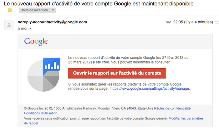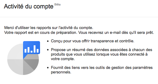 En vous inscrivant à ce service, accessible depuis ce lien, Google vous enverra un lien vers un rapport protégé par un mot de passe avec un aperçu de votre utilisation des services Google. Ce rapport mensuel complet et détaillé analyse donc tout ce que vous faites sur les services, et ce lorsque vous êtes connecté à votre compte bien sûr.