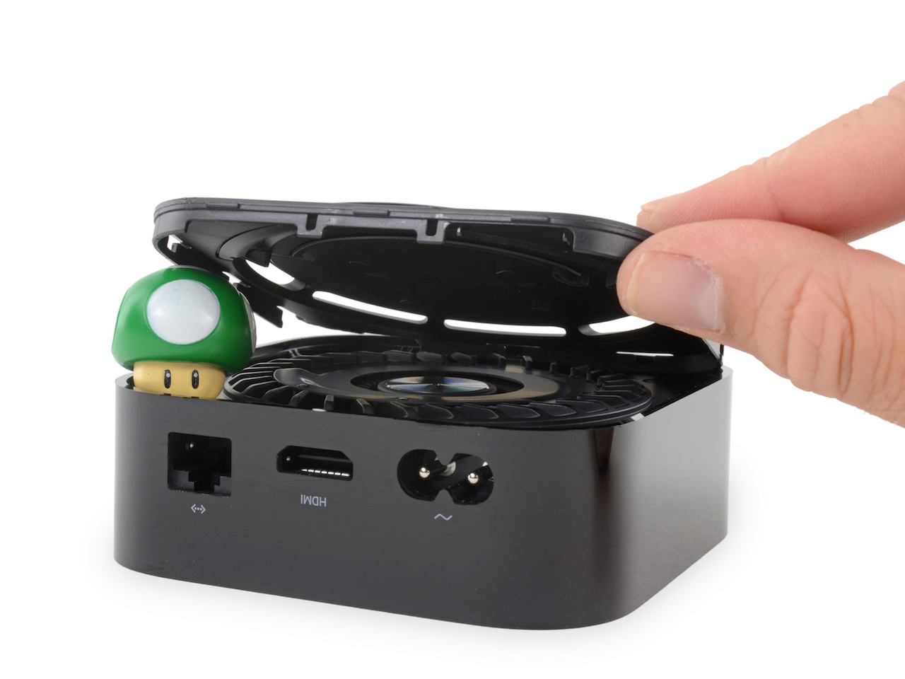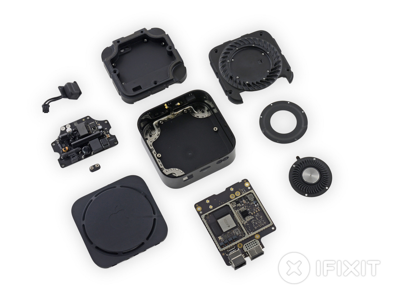Pour ouvrir la box, iFixit doit simplement défaire quelques clips en plastique. Et la bonne, il n’y a que des vis Torx standard à retirer. À l’intérieur, iFixit trouve un grand ventilateur qui a été fusionné avec le dissipateur de chaleur, pour créer une « énorme solution de refroidissement », sans doute nécessaire pour faire face à la chaleur supplémentaire dégagée lorsque la box a besoin de plus de puissance pour sa sortie 4K HDR.