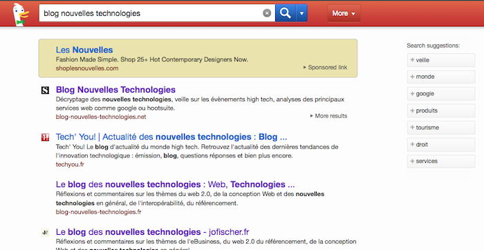 En revanche, le revers de cette politique de confidentialité est que DuckDuckGo ne peut pas affiner les recherches de ses utilisateurs en fonction de leurs requêtes précédentes, ni en fonction des centres d’intérêt connus, comme le font Google ou Bing.