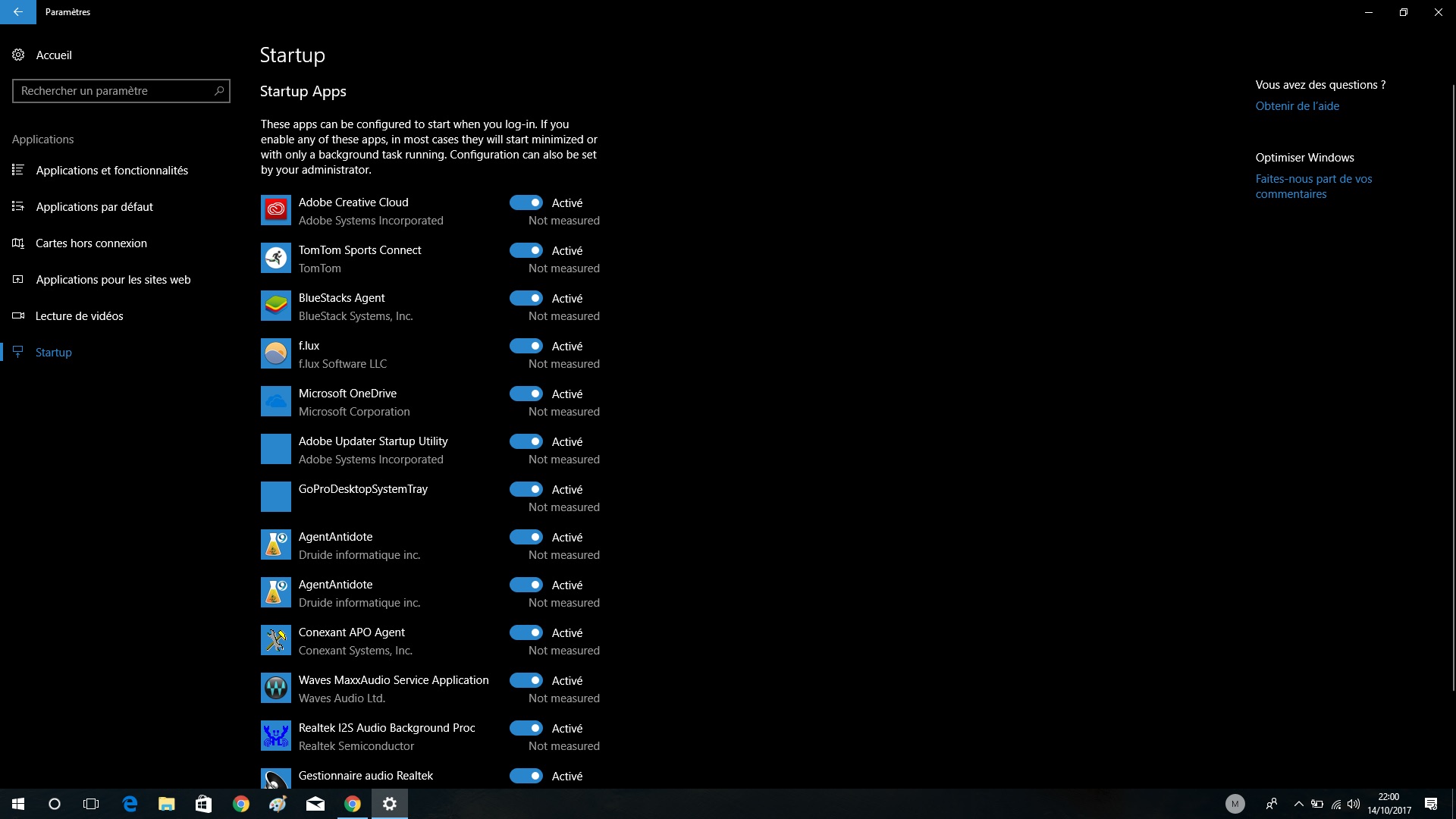 Le nouveau menu est placé dans « Paramètres », puis « Applications », « Startup » (le menu n’est pas encore traduit en français). De là, les utilisateurs peuvent facilement basculer un bouton pour désactiver ou activer un élément spécifique. Votre ordinateur ne semble jamais démarrer aussi vite que le jour où vous l’allumez pour la première fois ? C’est logique. Une fois que vous avez installé un tas d’applications qui influent sur le chargement à chaque redémarrage de l’ordinateur, ils ont tendance à ralentir le processus de démarrage.
