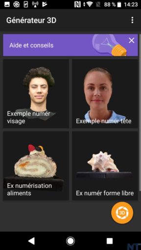 La plus grande caractéristique hors de la caméra du XZ1 est la nouvelle application Générateur 3D qui permet de créer des scans 3D des visages, de la nourriture et d’autres objets aléatoires. Tout le monde ne trouvera pas cette fonctionnalité utile, mais avoir des capacités de numérisation 3D sur un téléphone mobile est indéniablement impressionnant. Sony travaille dur pour fournir à cette technologie une variété de cas d’utilisation au-delà de la création de vos propres GIF 3D et des autocollants. La création d’un scan 3D est plutôt simple. Vous devez d’abord choisir si vous voulez numériser un visage, une tête, de la nourriture ou effectuer un scan d’un objet quelconque. Le processus de numérisation est simple, mais vous devrez vous en tenir à des zones bien éclairées pour de meilleurs résultats.