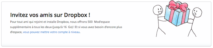 Pour rappel la méthode est très simple : pour tout ami qui rejoint et installe Dropbox, celui-ci sera crédité de 500 Mo (ou 1 Go selon votre plan) ainsi que vous-même. Voici un guide rapide pour faire passer le mot: