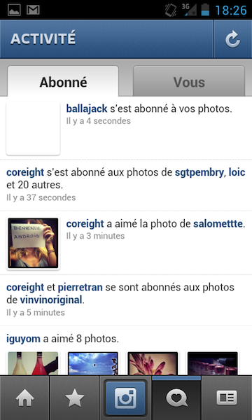 De même, Android dispose d’un bouton de recherche clair pour trouver de nouveaux utilisateurs ou parmi des tags, ce qui n’est pas aussi clair sur iOS.
