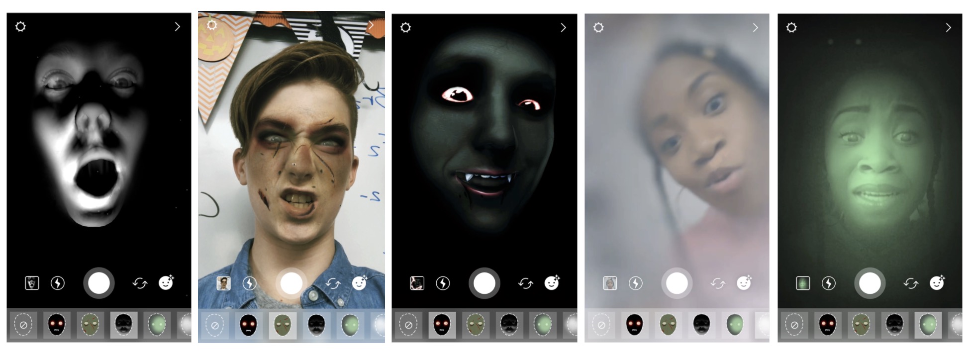 Les filtres du visage pour Halloween permettront à l’utilisateur de se mettre dans l’ambiance avant la semaine prochaine. Méfiez-vous des filtres les plus fantomatiques qui peuvent faire paniquer vos amis dans les messages personnels — ne soyez pas trop effrayant ! Transformez-vous en un zombie ou un vampire, lancez la machine à brouillard, ou éclairez-vous avec une lampe de poche fantasmagorique pour avoir des flashbacks.