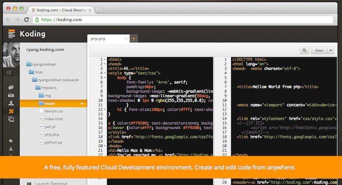 Koding regroupe tout un tas d’outils plus fascinants les uns que les autres, des outils comme un éditeur complet avec coloration syntaxique, comme des fonctions collaboratives, etc…
